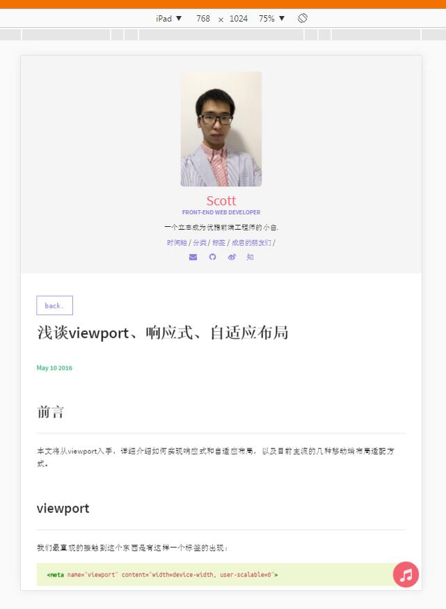 接下来我就以本博客为例详细的介绍一下响应式布局: