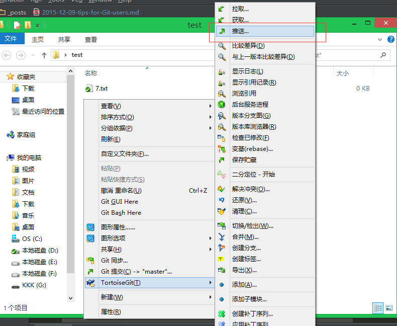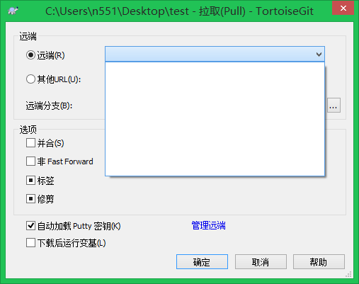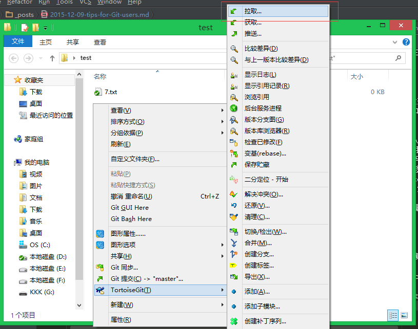 这时要做的就是先把远程仓库的代码拉取下来,以确保自己的代码不会产生冲突。在TortoiseGit当中,它帮助我们合并了merge的操作,我们只进行pull操作即可: