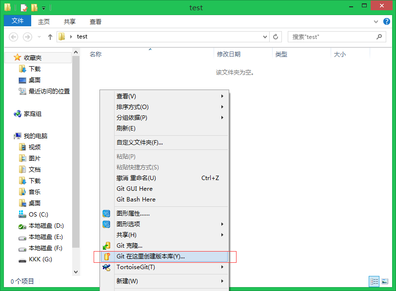 此时我们还在这个路径之下,接下来要做的就是拥有一个仓库,这个仓库可能是从一个已有的仓库复制即(clone)而来,也能是你创建的一个新的仓库,还是在该窗口点击右键我们以新建为例: